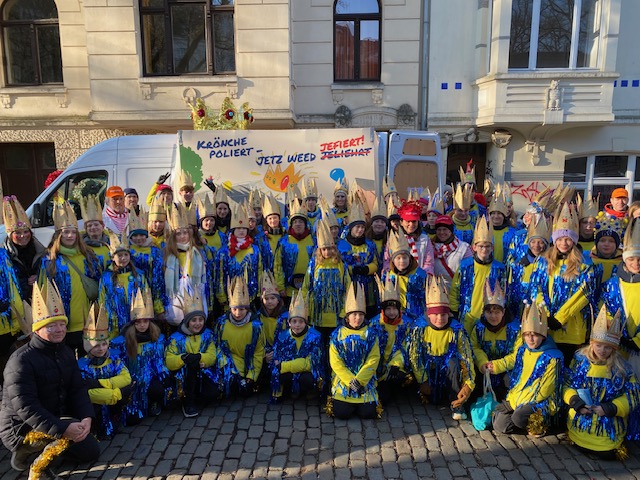 Was für ein unvergesslicher Tag für die Schulgemeinschaft der Königin-Luise-Schule! Unter dem Motto „Krönche poliert – jetz weed jeliehrt… jefiert!“ strahlten unsere Teilnehmer:innen mit ihren goldenen Kronen und funkelndem Lametta um die Wette – ein glitzerndes Meer aus guter Laune, Lebensfreude und echtem kölschen Brauchtum. Kamelle und Strüßje waren begehrt wie nie, und unsere beeindruckend große Polonese sorgte für ein ganz besonderes Highlight: Fast zwei Minuten lang waren wir im WDR zu sehen! Ein Moment, der uns alle mit Stolz erfüllt hat.