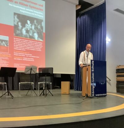 Bewegende Momente an der Königin-Luise-Schule anlässlich einer ungewöhnlichen und beeindruckenden Buchpräsentation: Der Deutsche Lehrkräftepreisträger und Geschichtslehrer der KLS Dr. Dirk Erkelenz präsentierte am 6. Juni 2023 mit seinen Schülerinnen und Schülern das langerwartete Buch „Jüdische Schülerinnen und Schüler. Ihre Geschichte(n), zwischen Integration, Verfolgung und Ausgrenzung“.