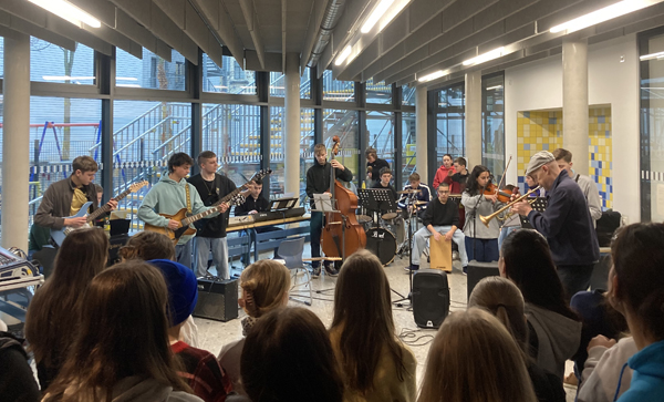 Wir sind Lotta und Ida aus der 9 und waren Teil des außergewöhnlichen Youthsayers Outernational London-Austauschs. Die Youthsayers sind eine Ska- und Reggae-Musikgruppe aus London mit Musiker:innen im Alter von 13-18 Jahren. Wie viele aus der KLS-Gemeinschaft erfahren und hören konnten, startete dieses besondere Musikprojekt Ende Januar 2023 in der Projektwoche an unserer Schule. Die beiden Profimusiker Idris und Robin, die die Youthsayers leiten, besuchten uns nicht nur, sondern sie machten tolle Musik mit uns.