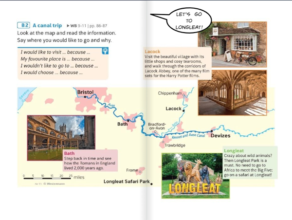 Warum nicht mal mit den Lehrwerkspersonen von Camden Town auf Safari gehen? Das haben Schüler:innen der 5c am Schuljahresende getan und in einer kreativen Schreibaufgabe Geschichten und Comics dazu verfasst. Sie haben sich vorgestellt, was die Lehrwerkspersonen wohl am 6. Tag ihrer Reise im Longleat Safari Park erleben. Sie begegnen Löwen und Tigern, Giraffen und Elefanten und bestehen manche aufregende Situation, z.B. wenn ein Adler einfach in ihren Bus hineinfliegt, weil Caroline das Fenster aufgelassen hatte.