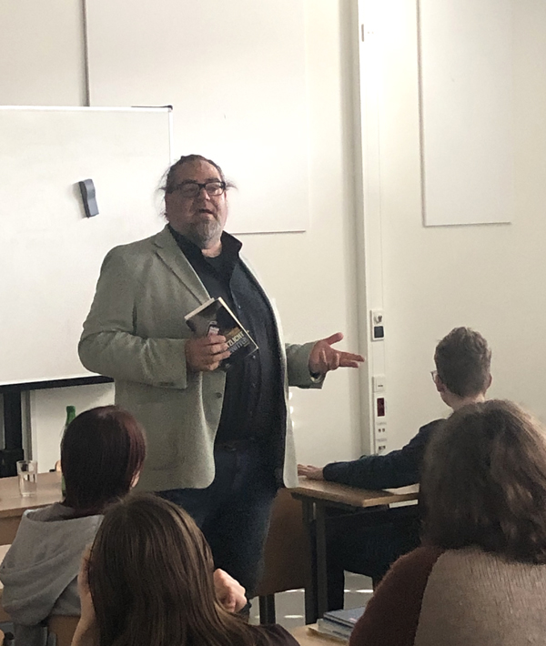 Die letzte „Luise liest“-Stunde in diesem Schuljahr war besonders: Anders als sonst hatten viele Kurse und Klassen das Vergnügen, vorgelesen zu bekommen. „Luise liest vor“ hieß es zum Beispiel für alle 7. Klassen, die der Autor Christian Linker zwischen einer Lesung aus „Blitzlichtgewitter“ oder „Stadt der Wölfe“ wählen ließ. Gebannt hörten die Schüler*innen dem Auszug aus „Stadt der Wölfe“ zu.