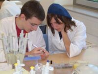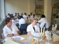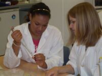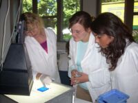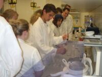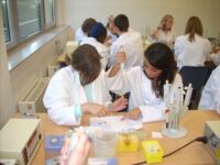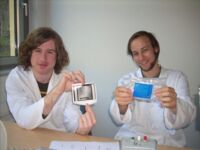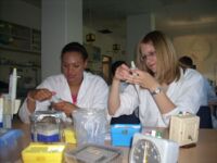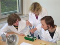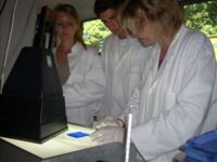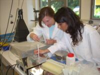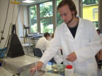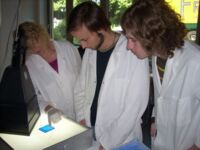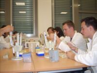Die Schüler konnten hier in einem Labor mit professioneller Ausstattung Experimente zur Gentechnik (DNA-Isolierung, Trennung von DNA durch Gelelektrophorese, Vervielfältigung von DNA-Spuren mit Polymerase-Kettenreaktion etc.) selbst durchführen.