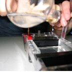 Durch die Gelelektrophorese (ein Trennungsverfahren für Moleküle im elektrischen Feld,) bekamen wir die Sicherheit, dass das Zerschneiden und neue Zusammenfügen funktioniert hat .
