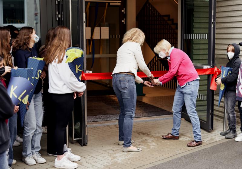 Mit diesem besonderen ersten Schultag war der Abschiedsschmerz von unserem bisherigen Schulgebäude, das nun generalsaniert wird, schnell vergessen. Sicher werden wir noch einige Zeit benötigen, um die schnellsten Wege herauszufinden und alle Ecken des Gebäudes kennenzulernen, aber es sind sich alle einig: Das neue Gebäude ist ein Volltreffer!