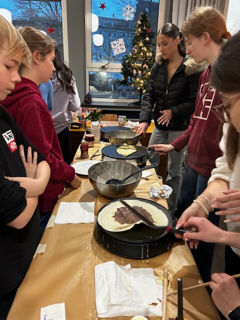 Die Adventsfeier 2025 an der KLS war ein fröhliches und buntes Fest, das die Schulgemeinschaft in vorweihnachtliche Stimmung versetzte. Im Lichthof duftete es nach Crêpes, Waffeln und Kuchen, dazu wurden Kinderpunsch, Kakao und Kaffee angeboten. Die Klasse 7a sorgte mit Zuckerwatte, Plätzchen und einer Tombola für Begeisterung, während die Klassen 5c und 8c selbstgebastelte Weihnachtskarten präsentierten. In den Räumen A001 und A002 entstanden kreative Schneekugeln unter dem Motto „Weihnachten im Glas“, und die EF packte Pakete für die Aktion „Fröhliche Weihnachten für alle“. Dazu wurden zuvor schon viele Spenden wie Lebensmittel oder Hygieneartikel abgegeben.