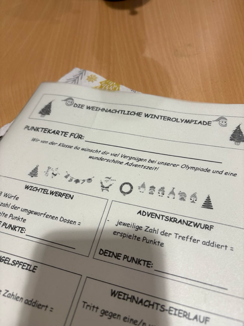 Besonders beliebt waren die Glücksräder der Klassen 10c, 7b und die Glitzer-Tattoos der 10a. Sportlich wurde es bei der Winterolympiade der 6a, da waren sogar die Eltern voller Eifer und die Klasse 7c lud zum gemeinschaftlichen Kekse dekorieren und verzehren ein. Überall herrschte eine fröhliche Atmosphäre, die von Lachen, Gesprächen und dem Duft weihnachtlicher Leckereien erfüllt war.