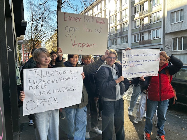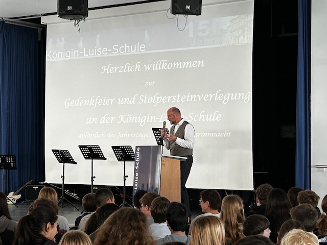 Am 7. November 2025 fand unsere jährliche Gedenkfeier statt, die an die so genannte „Reichspogromnacht“ erinnert – als Mahnung, dass wir sofort gegen jede Form von Ausgrenzung, Diskriminierung und Einschränkung der Demokratie aufstehen müssen. Das hat inzwischen an der KLS Tradition.
