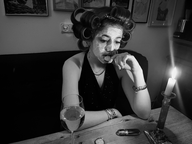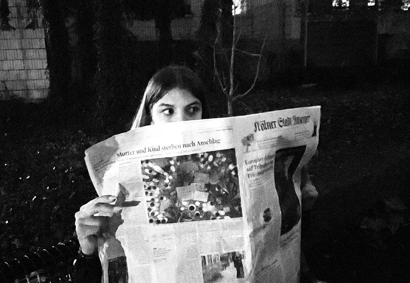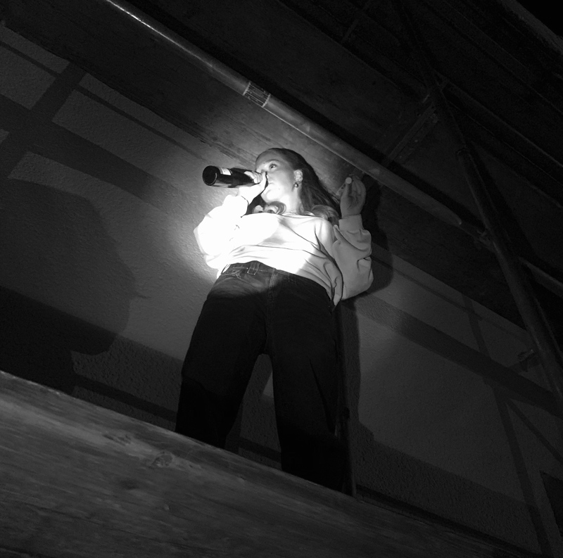 Die Aufgabe in dem EF-Kurs Kunst war es, Fotografien zum Thema „Untitled Filmstills“ von einer erdachten Situation in verschiedenen Varianten zu erstellen. Dabei sollten sich die Schülerinnen und Schüler an den frühen Arbeiten der amerikanischen Fotografin Cindy Sherman orientieren, eine geheimnisvolle und deutungsoffene Situation schildern, also verschiedene Möglichkeiten der Weitererzählung bzw. Interpretation zulassen. Die inszenierten Fotos sollten in einer schwarzweißen Retroästhetik gehalten sein, an alte Filme erinnern, was nur durch eine entsprechende Bildbearbeitung erzielt werden konnte. Herausgekommen sind spannende Bilder, die vielfältige Assoziationen zum Geschehen zulassen und in bester Weise eben nicht ganz eindeutig sind.