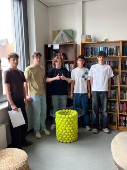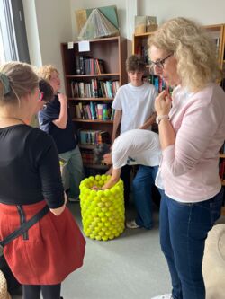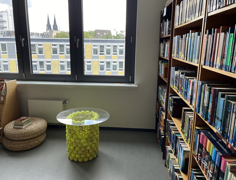 haben die Schülerinnen und Schüler der Klasse 8a ihre vom Team von Junge Stadt Köln begleiteten Projekte. Nachdem alle ihre Urkunden erhalten hatten, überreichte die Projektgruppe, die verschiedene Objekte aus alten Tennisbällen angefertigt hatte, einen ihrer spektakulären Tennisball-Tische der Schulbücherei. Herzlichen Dank dafür!