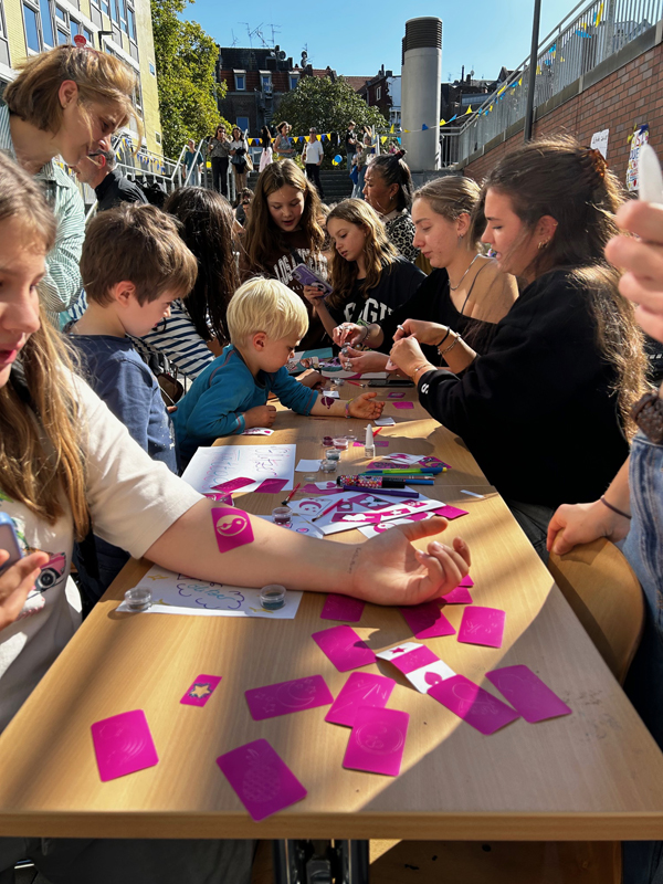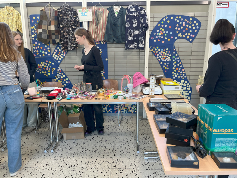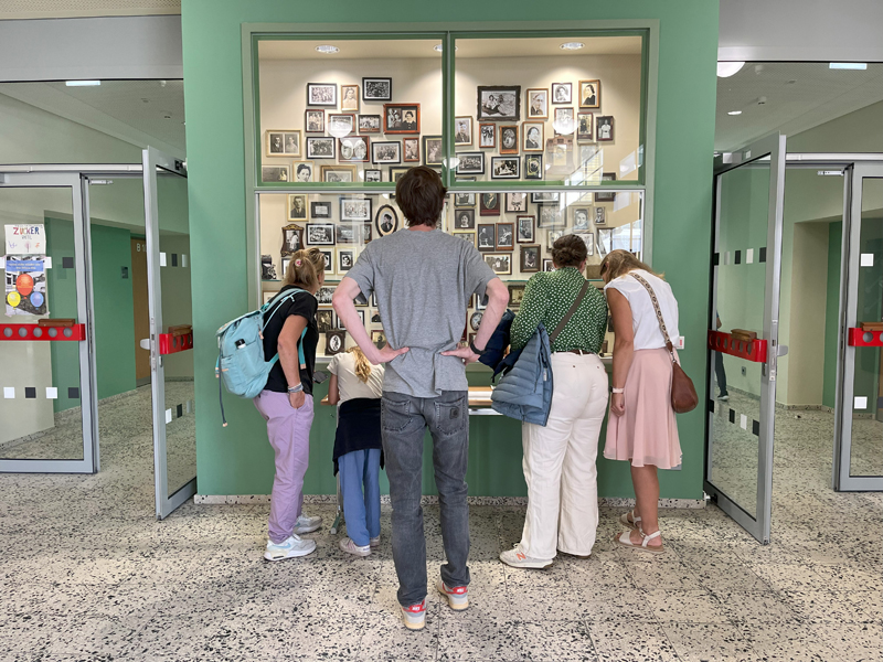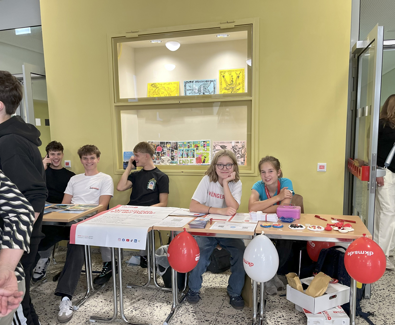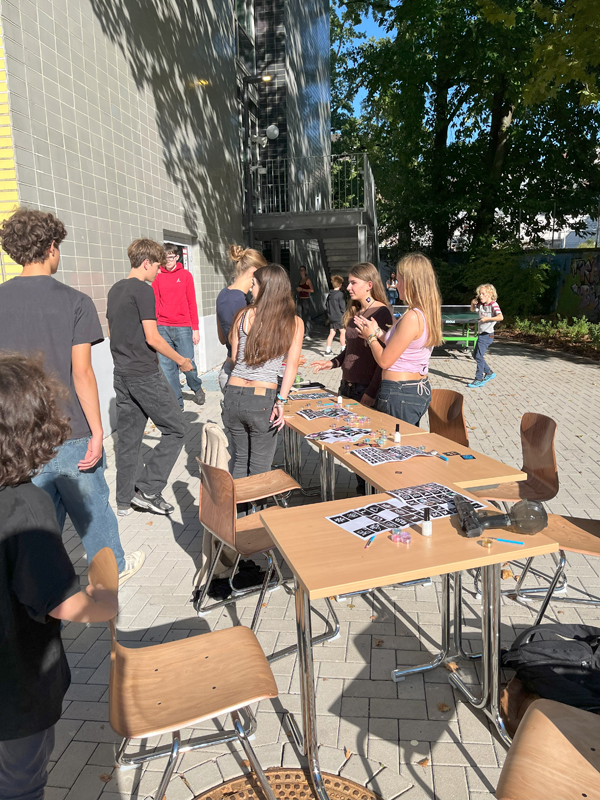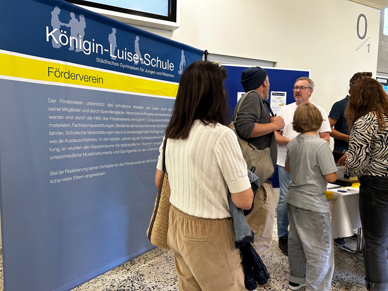 Besondere Aufmerksamkeit erhielten auch der Stand der Ruder-AG, die DKMS sowie die bewegende Foto-Gedenkwand zu „Luises aktiver Erinnerung”. Darin finden sich die Aufnahmen unserer ehemaligen Schülerinnen, die im Dritten Reich von den Nazis verfolgt wurden und deren Biografien von unseren Schüler:innen recherchiert und veröffentlicht werden. Den krönenden Abschluss bildete die Filmvorführung „Liebesfilme & mehr“ des Fachs Mediales Gestalten.