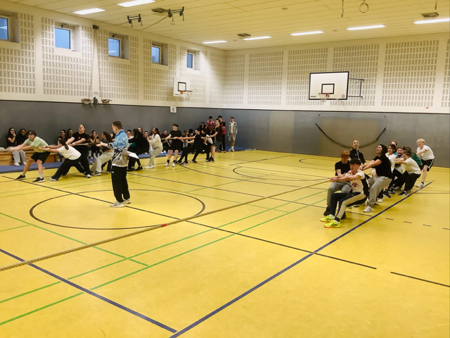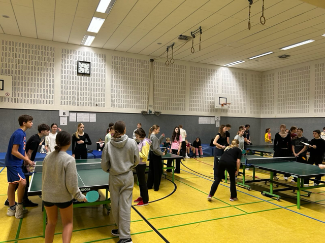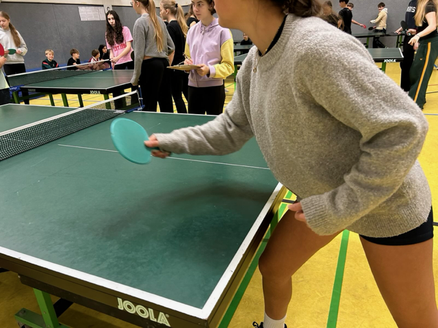 Die Klassen der jeweiligen Stufen traten in den Sporthallen abwechselnd gegeneinander an. Dabei standen sowohl ein klassisches Tischtennisturnier als auch vielfältige Challenge-Games auf dem Programm, bei denen die Klassen spannende Disziplinen meistern mussten.