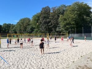 Im Beachpark Cologne traf sich am 23. August 2024 gleich morgens die gesamte Schulgemeinde für das beliebte Sportturnier ein. Beim Fußball, Völkerball und Volleyball gaben sich Unter-, Mittel- und Oberstufe die Ehre. Die Lehrkräfte mischten kräftig beim Volleyball mit und unterstützten ihre Schüler:innen als Linien- und Schiedsrichter:innen in den Vorrunden bis zu den Finalen. Bei schönstem Sonnenschein und 26 Grad (gefühlte 30!) konnte die gesamte Schule wieder einmal das große Gemeinschaftsereignis „KLS Outdoor“ erleben. Hoch ging es her mit viel Spaß und Leidenschaft. Begleitet mit dem besten Musikmix der Plattenteller von Mister DJ Schutz wurden die Bälle gekickt, geworfen, gepritscht und geschmettert.