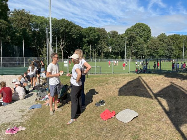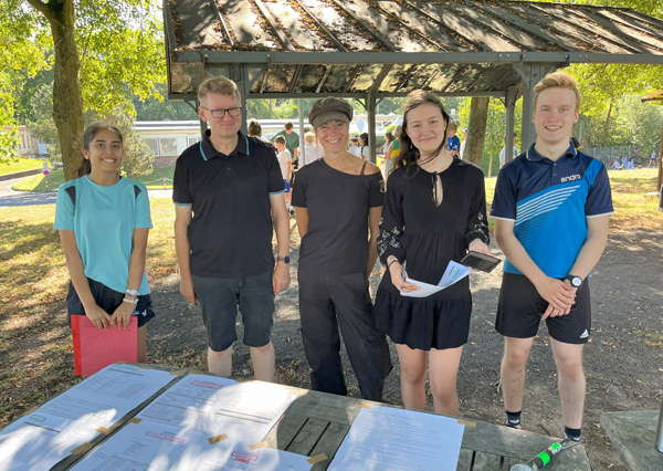 Stets zur Stelle war der Sanidienst u.a. mit Pflastern, Kühlakkus. Leckere Snacks, Obst, Hot Dogs und kühle Getränke verkaufte die Q2. Dank des Orgateams der SV liefen die Turniere reibungslos bis zu ihrem Ende am Mittag.