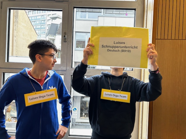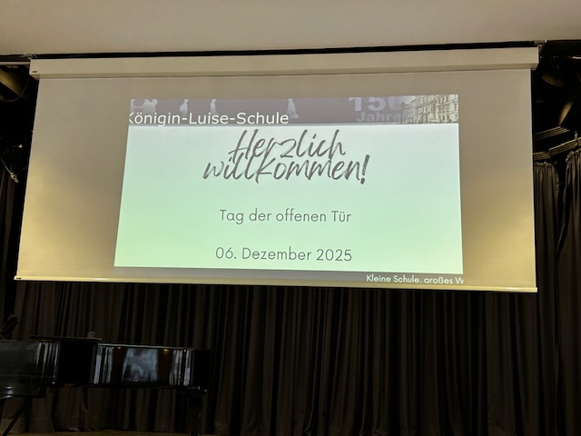 Luises Tag der offenen Tür, dieses Jahr am 6. Dezember 2025 an unserem Gymnasium, und da ging es richtig rund: Kurze Auftakt-Info durch das Schulleitungs- und Erprobungsstufenteam über das bunte Kennenlernprogramm im PZ und schon fingen der vielseitige Schnupperunterricht und die große Ausstellung zu Luises Lernwelten ab 10 Uhr an.