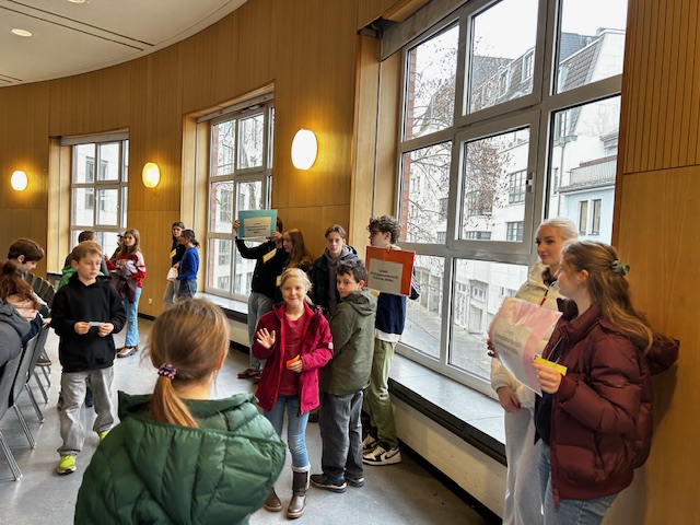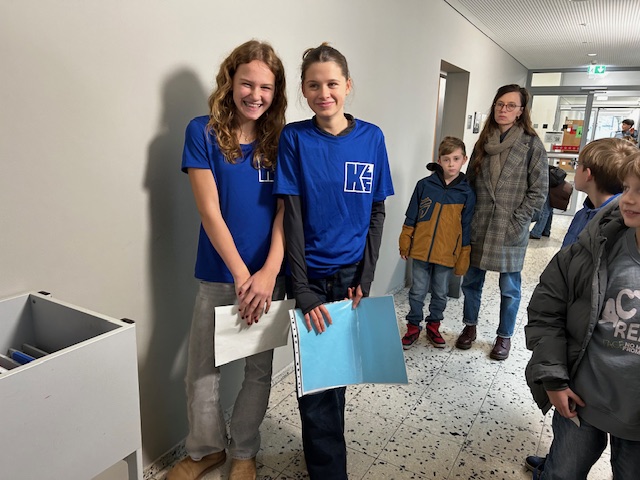 Gleich zwölf Schulführungen machten die Schüler:innen der 7b für die große Anzahl der interessierten Familien mit Kindern der vierten Klassen und zeigten unseren Alt- und Neubau und alle Besonderheiten der KLS. Unser routiniertes Team der 10c brachte die Gymnasiasten in spe zum Schnupperunterricht und danach wieder gut gelaunt zu ihren Eltern. Die hatten sich zuvor über die verschiedenen Wahlmöglichkeiten und den sanften Übergang zum Gymnasium an der KLS bei Lehrkräften und unserer Elternschaft informiert. Bei weihnachtlicher Musik konnten unsere Gäste Luises spannende Schulrallye machen, nach deren erfolgreichem Ende eine frische Tüte Popcorn vom Förderverein winkte. Großer Dank an dieser Stelle an die Schüler:innen der 10b und dem Förderverein für diesen tollen Einsatz!