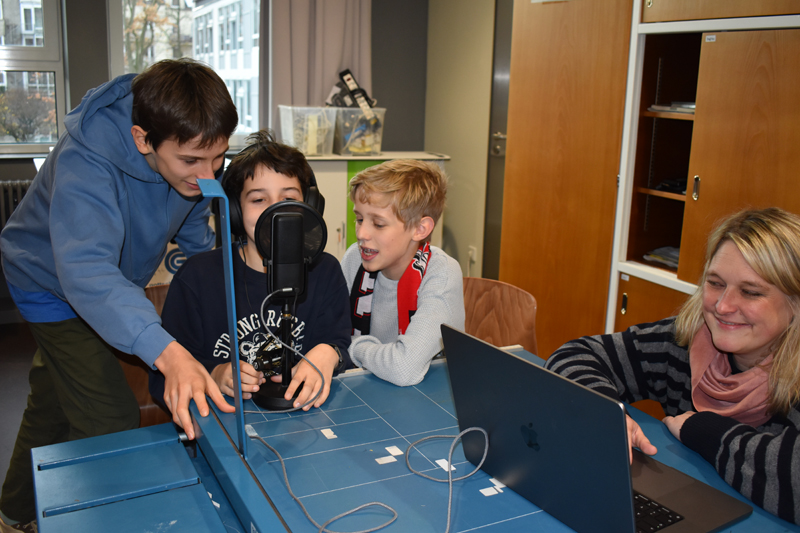 Zurück in der Schule, haben wir uns dann unsere Aufnahmen aus dem Tierheim angehört und geschnitten. Einige von uns haben ein Intro gemacht, in dem wir die Hörerinnen und Hörer begrüßen und unser Thema vorstelle. Andere von uns haben die Moderation eingesprochen. Anschließend haben wir die verschiedenen Audiodateien zusammengeschnitten und mit Musik unterlegt.