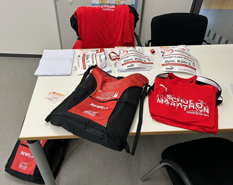 Nächsten Sonntag (06.10.2024) ist es wieder soweit. Luise läuft den Köln Marathon. Die Vorbereitungen sind in vollem Gange. Dieses Jahr haben wir sogar drei Staffeln, die mit jeweils sieben Schülerinnen und Schülern an den Start gehen und gemeinsam die Strecke von 42,2 km überwinden. Neben alten Häsinnen und Hasen sind dieses Jahr auch viele neue Gesichter dabei. Da ist die Aufregung schon groß: Wo laufe ich überhaupt los, wer übergibt mir den „Staffelstab“, schaffe ich meine Strecke, oder gehe ich morgen lieber schnell noch eine Runde trainieren, wo kommt die Startnummer hin?