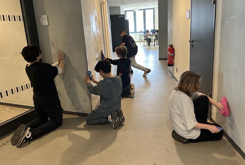 Besonderen Ehrgeiz und vor allem Freude bei der Reinigungsaktion zeigte die 6c. Die Kinder hatten sich das Motto „Wer entfernt den meisten Dreck?“ zu eigen gemacht und um die Wette geputzt. Nicht nur in der eigenen Klasse, nein, auch in den Fluren ließen sie keinen Quadratzentimeter aus. Hinter jedem Schrank sahen sie nach, alle Tische, Stühle, Fenster- und sogar Wandflächen wurden penibel überprüft und auf Hochglanz poliert. Besonders motivierend dabei: gute Partymusik! Im Handumdrehen und mit vereinten Kräften waren alle Kinder schnell fertig und zufrieden mit dem sauberen und ordentlichen Ergebnis. Also kann das neue Schuljahr 2024/2025 kommen.
