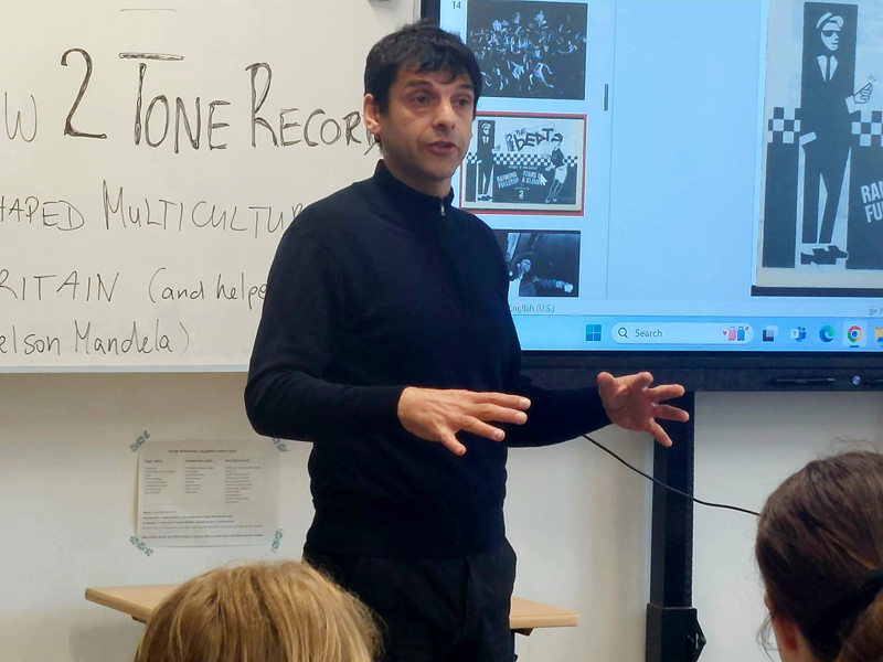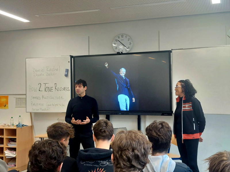 Im Rahmen des Austauschs mit der Londoner Charter School East Dulwich waren heute zwei berühmte Personen zu Besuch an der KLS: Der ausgezeichnete Autor Daniel Rachel hat heute sein Buch “Too Much TooYoung – The 2 Tone Records Story” vorgestellt und über die äußerst interessante Geschichte des “2 Tone Records”-Labels aus den 1980er Jahren in England erzählt.