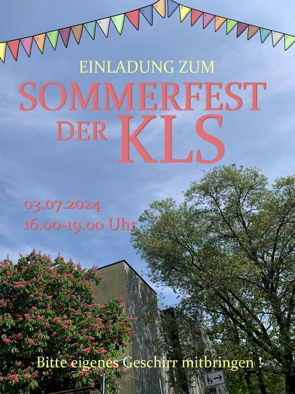 Herzlich laden wir alle Mitglieder der KLS-Schulgemeinschaft zum Sommerfest am 3.7.2024 in der Zeit von 16 bis 19 Uhr ein.