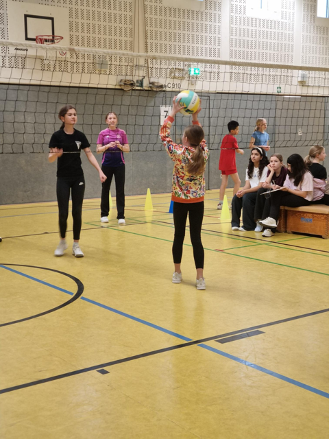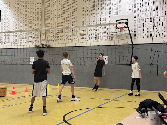 Als beide Stufen fertig mit ihren Aufgaben waren, wurde getauscht und die 7. Klassen amüsierten sich mit den Gesellschaftsspielen und die 8. Klassen fingen an Volleyball zu spielen.