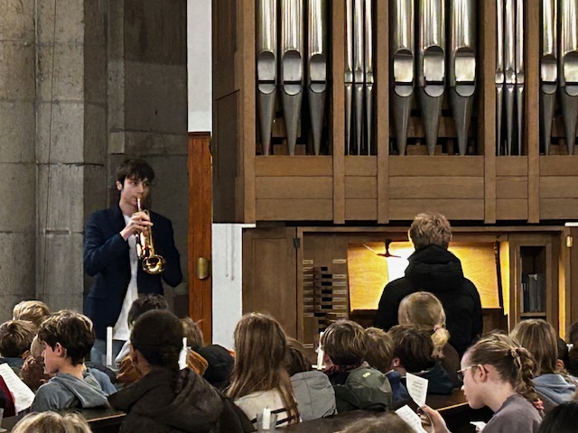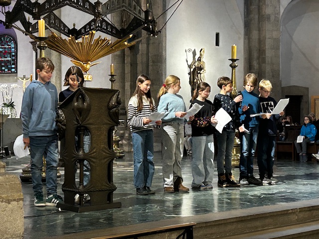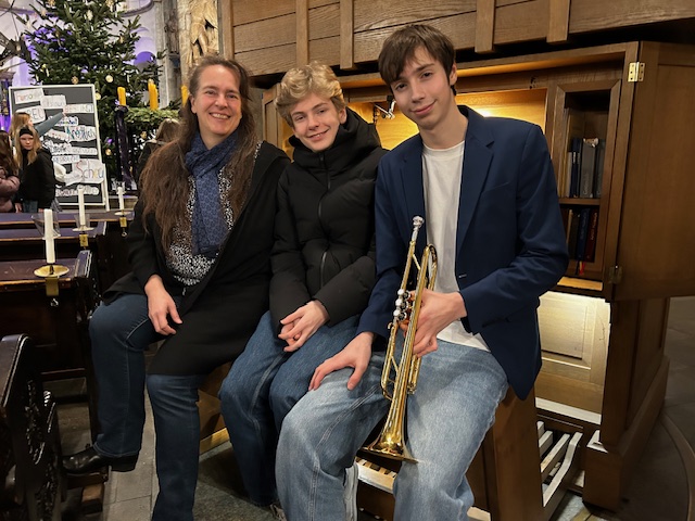 Musikalisch gerahmt wurde der Gottesdienst von Frau Wiskirchen an der Orgel und Leo und Jakob am Klavier und der Trompete.