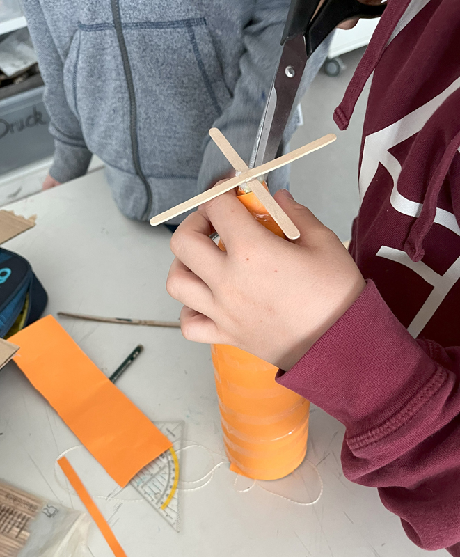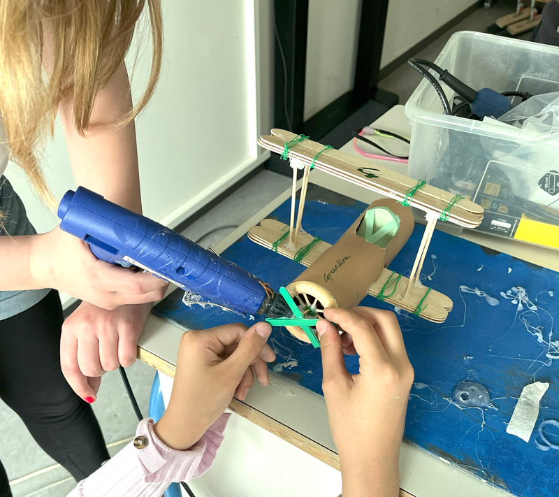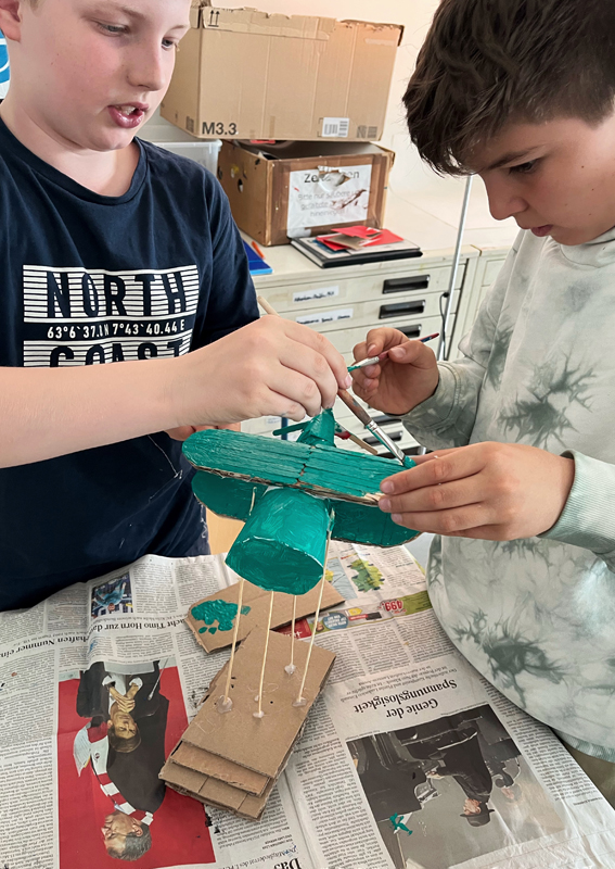 Wir haben meistens zu zweit die Flugmaschinen hergestellt. Den Kindern aus unserer Klasse hat vor allem das Bauen gefallen.