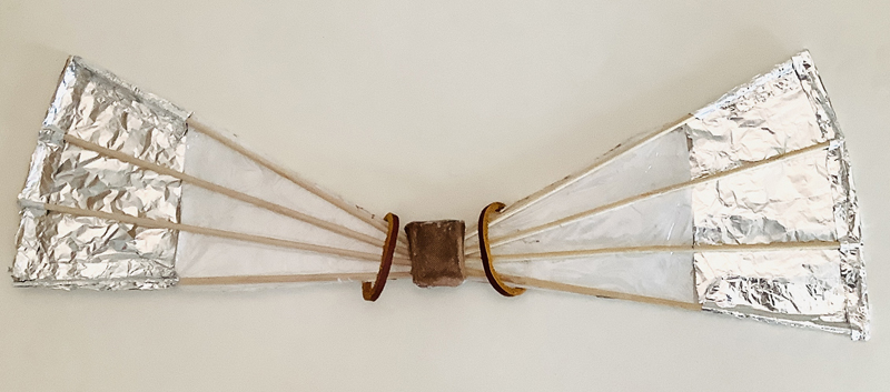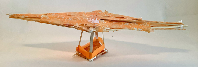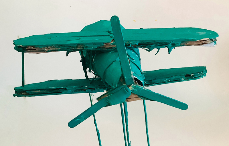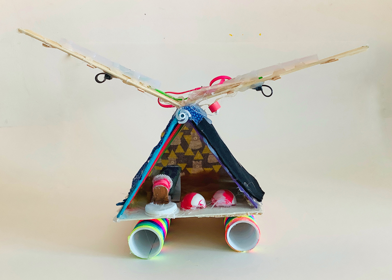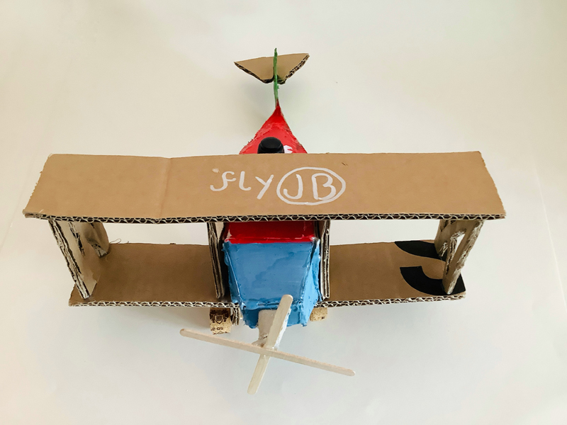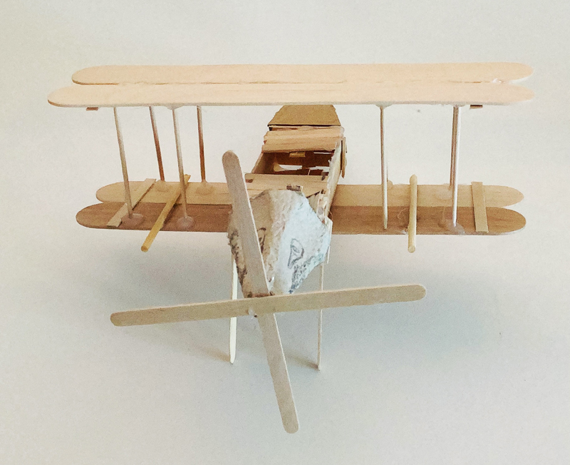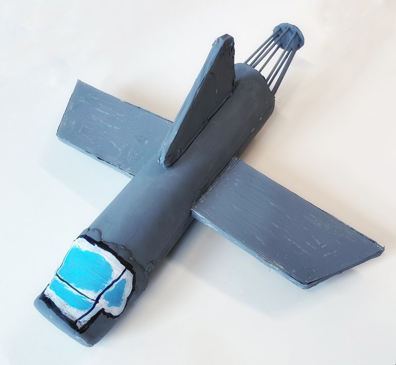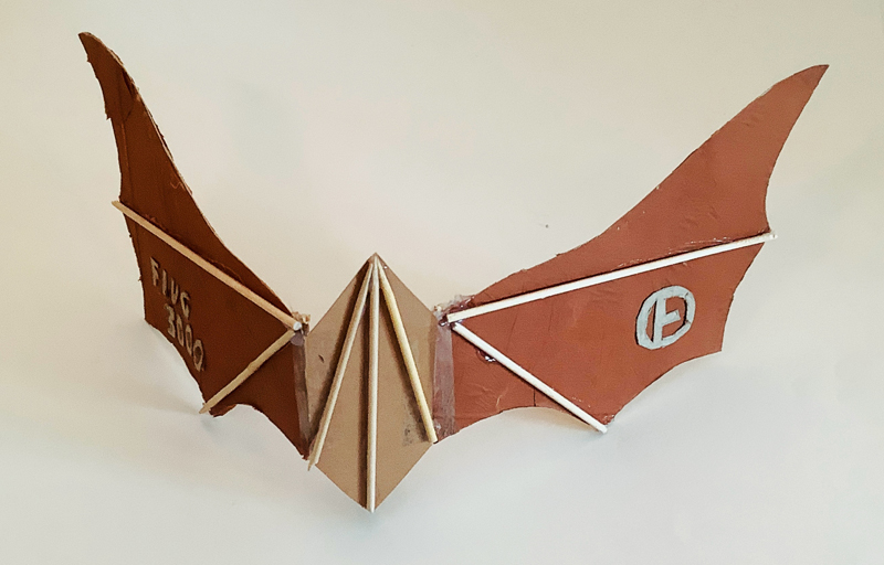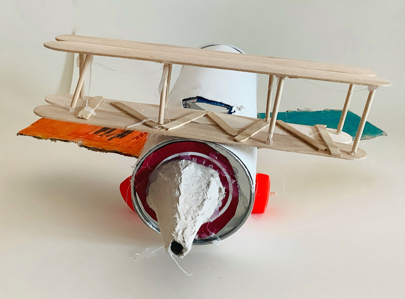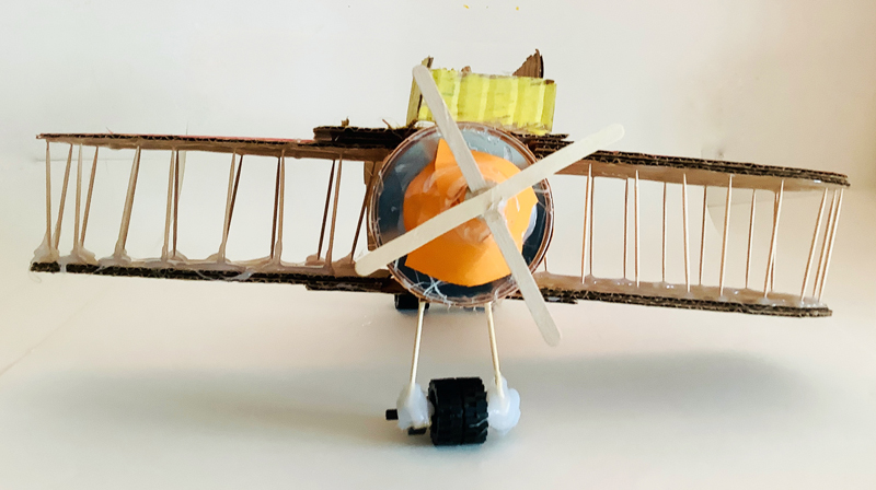 Die 5c baute altmodische Flugobjekte. Es sind sehr verschiedene Objekte entstanden, manche Objekte sehen aus wie alte Flugmaschinen und manche Schüler:innen nutzten ihre eigene Fantasie zum Gestalten.