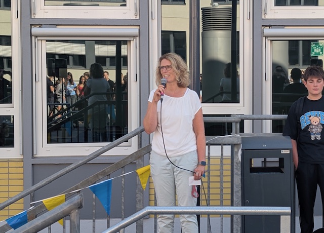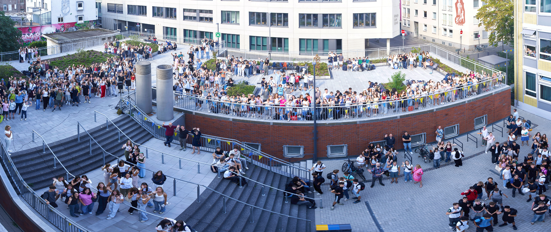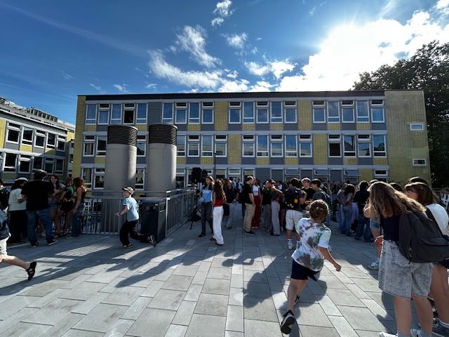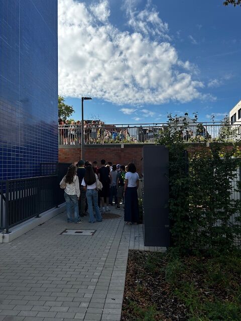 Unfassbar: Morgens, kurz nach zehn, verschlossene Türen an der KLS! Haben wir den Schulanfang nur geträumt? Stattdessen lädt Luise in den „kleinen Schulhof bzw. auf’s Turnhallendach“ ein. Dort kamen alle Schüler:innen an empfangen von fröhlich sanfter Musik. Schön, kein Unterricht. Dennoch fragten sich viele, was denn nun folgen würde.